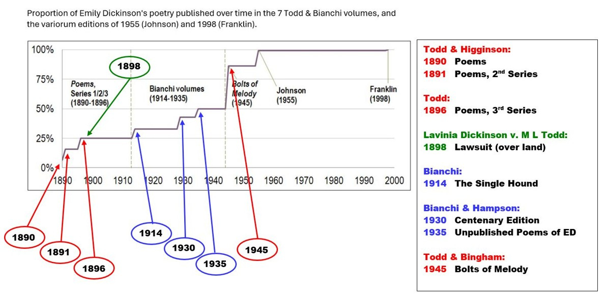 R. W. Franklin updated the “complete” edition in 1998, and he reported, “About three fourths of the poems exist in a signal source. For the rest, with from two to seven sources, the policy has been to choose the latest version of the entire poem, thereby giving to the poet, rather than the editor, the ownership of change.”